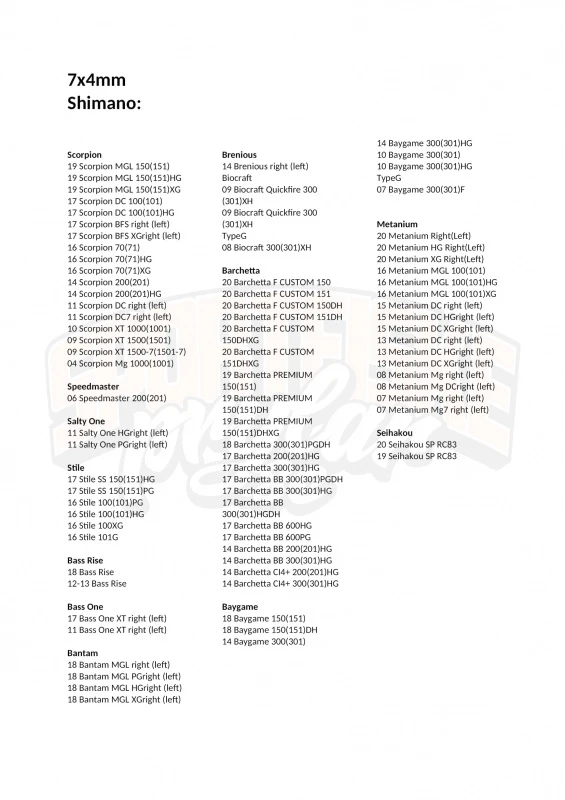 | Choose Reel Brand | Daiwa, Abu Garcia, Quantum, Shimano (8x5mm), Shimano, 13 Fishing (7x4mm) |