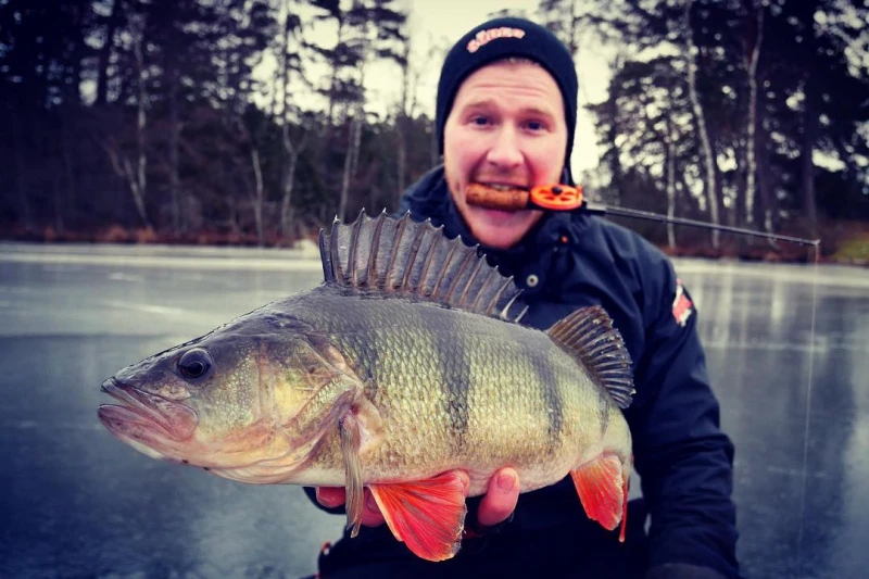 Die Technik unterscheidet sich ein wenig vom normalen vertikalen Eisfischen und wir werden eine kurze Präsentation und unsere persönlichen Empfehlungen in Bezug auf Ausrüstung sowie Strategien geben.Die Hauptschnur, die wir dafür bevorzugen, ist eigentlich ein dickeres Fluocarbon anstelle eines dünnen Monofilaments/Nylons. Dies dient hauptsächlich dazu, unerwünschte Spieße daran zu hindern, unsere Schnüre mit ihren scharfen Zähnen abzuschneiden, aber es spielt auch eine wichtige Rolle, wie sie die Aktion des Köders im Wasser während des Angelns beeinflusst. Eine dickere Hauptschnur mit höherer Dichte sorgt dafür, dass der Köder langsamer in seine ursprüngliche Position zurückfällt, was den Barsch noch mehr dazu veranlasst, den Köder anzuschlagen.Was wir bei der Präsentation anstreben, ist, dass sich der Balance-Jig in einer kreisförmigen Bewegung bewegt und die Form einer „8“ unter dem Wasser bildet. Dies wird erreicht, indem man die Rute einmal fest anzieht, eine Pause von 2-3 Sekunden macht und dann noch einmal zieht. Dies zwingt den Balance-Jig dazu, sich so zu bewegen, wie wir es wollen, und wird am besten durch eine 4-5 Sekunden lange Pause vor der Wiederholung ergänzt. Bleiben Sie so unvorhersehbar und unregelmäßig wie möglich in Ihren Bewegungen, so wird der Köder mehr verwundet und lebendig, was zu mehr gefangenen Fischen führt.Wir wählen eine Rute, die ziemlich steif ist, um eine effiziente Hakensetzung zu gewährleisten und die kräftige Rute hilft dem Köder auch, sich noch eindringlicher zu bewegen.Eine Box, Rute, Fluocarbon und eine Gesamtzahl von 3 Balance Jigs werden mit diesem Bundle geliefert und es hat sich gezeigt, dass sie alle zusammen extrem gut funktionieren.Um Ihre Chancen zu maximieren, empfehlen wir immer einen Drillingshaken mit extremer Schärfe zu verwenden, aufgrund der einfachen Tatsache, dass große Barsche selten sind, und wenn Sie endlich Ihre Chance bekommen, wollen Sie sicherstellen, dass die Haken fest sitzen und Sie nicht im Stich lassen. Deshalb wechseln wir normalerweise den Haken gegen ein etwas größeres Modell und eines von besserer Qualität.Wir fügen eine alternative Option eines passenden Hakens hinzu, aber bitte bedenken Sie, dass dies nicht entscheidend für den Erfolg ist und die Originalhaken mitgeliefert werden.Typisch für die eher klassische Methode des Eisangelns mit gewöhnlichen Vertikalködern ist es, sich zu bewegen und am Grund entlang zu suchen. In diesem Fall wollen wir jedoch längere Zeit in den einzelnen Löchern verweilen und erst weiter oben in der Wassersäule fischen, bevor wir den Jig zum Grund hinunterarbeiten. Große Barsche bewegen sich während ihrer Fressorgien manchmal direkt unter dem Eis und können sich in der Wassersäule mehrere Meter auf und ab bewegen, wenn sie aktiv sind.Empfehlenswert für diese Art des Angelns ist ein Drill mit einer Breite von 150 mm, der es einfacher macht, größere Barsche durch das Loch nach oben zu lenken, und außerdem schonender für die Organe und ihre Schleimschicht ist.Das Schöne am Eisfischen ist, dass man nicht haufenweise Ausrüstung braucht, aber es gibt einige Hilfsmittel, die Sie nutzen können, um Ihre Chancen bei der Jagd auf große Barsche weiter zu erhöhen.Eine wichtige Verbesserung für dieses Angeln ist definitiv die Verwendung eines Sonars, das für das Eisfischen angepasst ist. Eines der besten und einfachsten Sonare, die wir auf dem Markt haben, ist das Deeper Smart Sonar, das jede Bewegung Ihres kleinsten Köders bis auf 10 Meter genau verfolgt. Mit Leichtigkeit verbinden Sie das Deeper Smart Sonar mit Ihrem Smartphone oder Tablet und plötzlich eröffnet sich Ihnen eine neue Welt.Viel Glück bei Ihren eisigen Abenteuern, und vergessen Sie die Sicherheitsmaßnahmen nicht!Rod:Pimpelspö QL-1001ABalance Jigs:Rapala Balanspirk 70mm 18gDaiwa Balance Jig 50mm 15gFluocarbon:Darts Fluocarbon 0,36mmDarts Fluocarbon 0,44mm